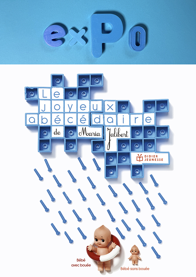 Chaque vitrine présente des saynètes de l’album composées avec des jouets ainsi, qu’en son centre, la lettre de l’alphabet